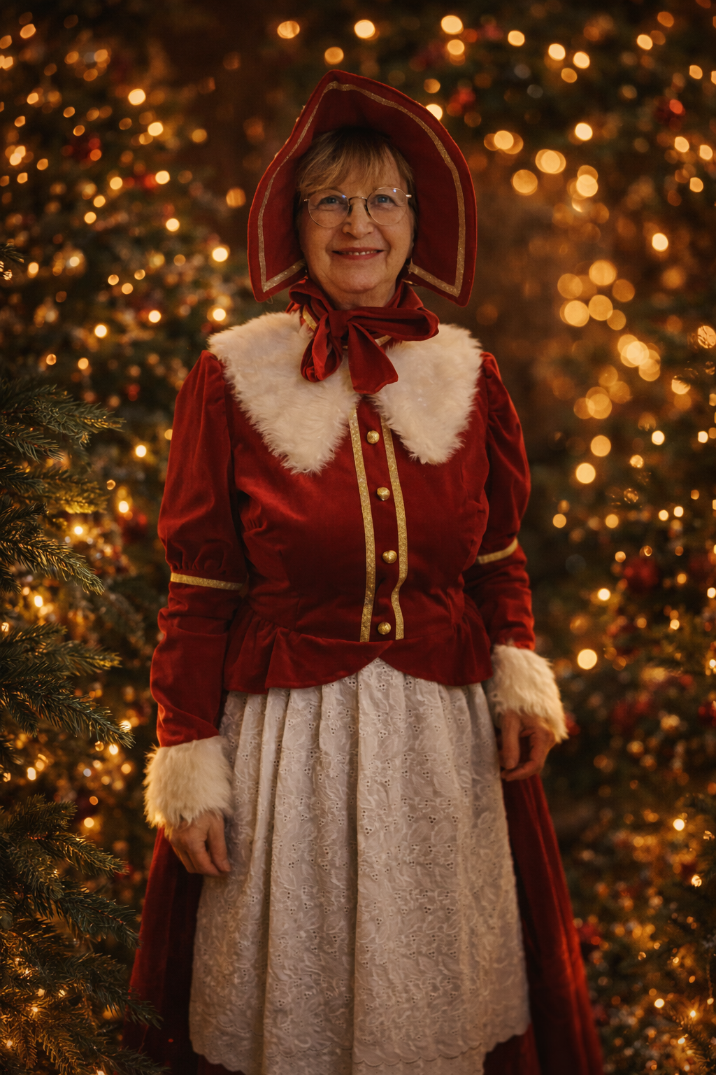 Mevrouw Claus ontstond iets later in de verhalen, als de stille kracht achter de Kerstman. Zij belichaamt zorgzaamheid, verbondenheid en evenwicht. Waar de Kerstman de wereld intrekt, bewaart zij de rust en warmte van het huis, ondersteunt de elfen en waakt over de tradities. En heel soms gaat ze zelfs mee op pad.
